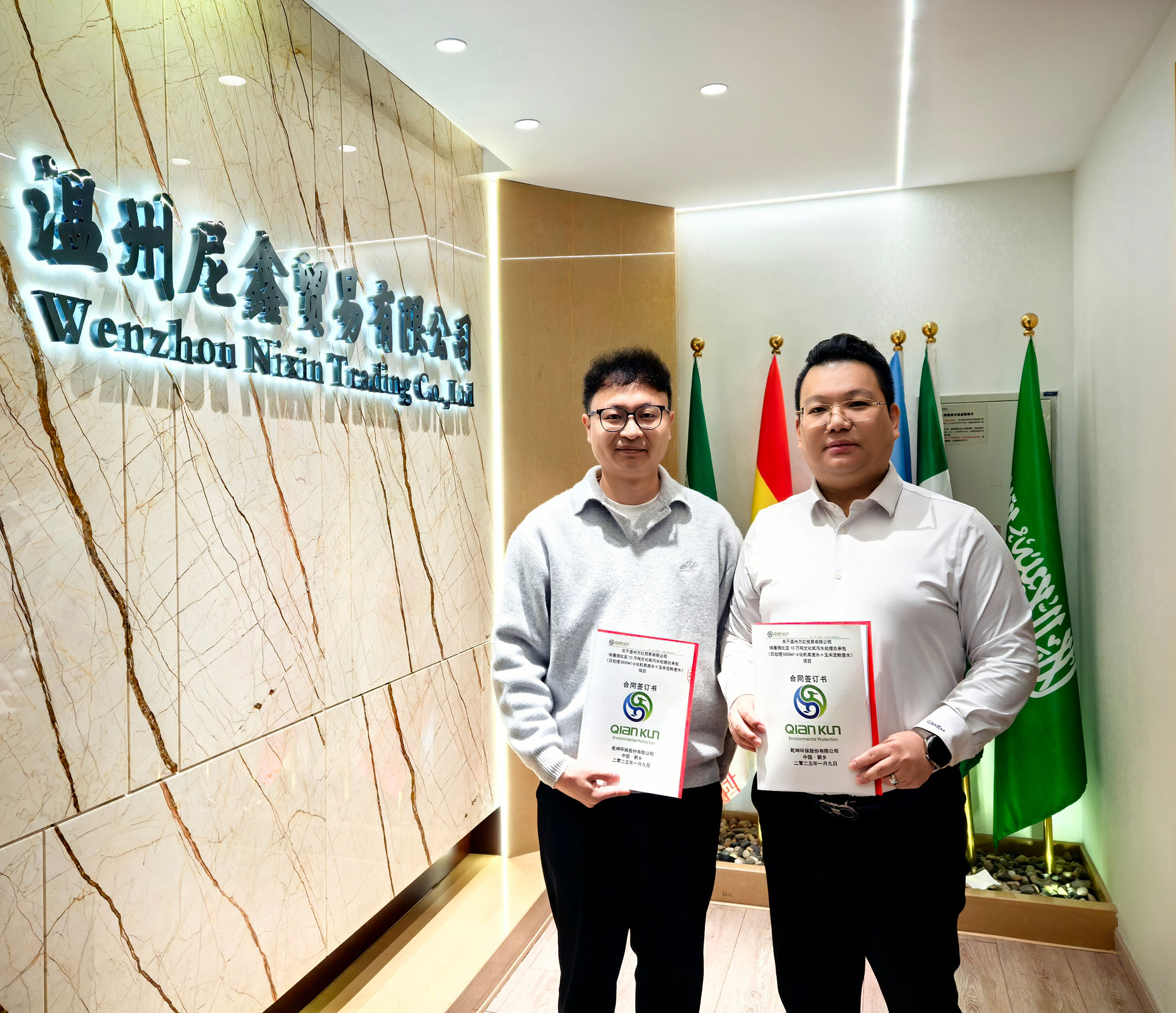 1 月 9 日,本次项目是继双方合作历程中的第四个总承包项目关键签单。自合作伊始,乾坤环保与尼鑫国际便如同命运的共同体,彼此信任,相互扶持,在环保领域的前沿探索中砥砺前行,在贸易的广阔海洋中乘风破浪,在文化的交融碰撞中绽放光芒。如今,在新年的号角声中,双方将以更加饱满的热情、更加坚定的步伐,向着更高远的目标奋勇迈进,共同拉开高质量发展的新篇章。
