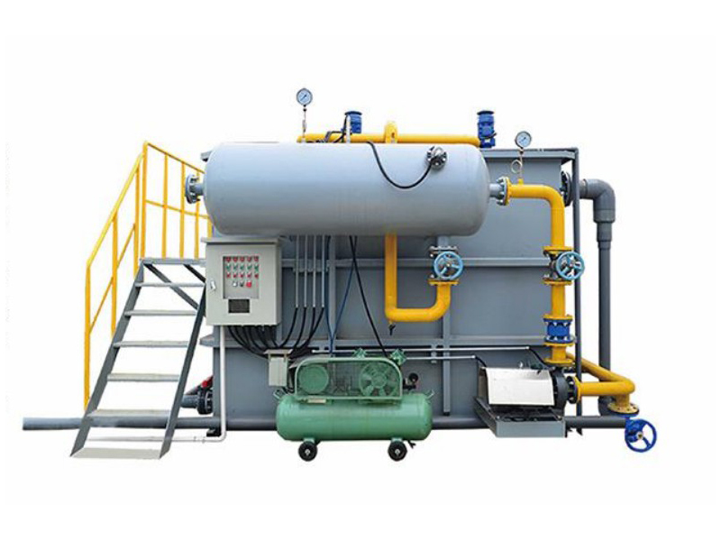 QK-DAF气浮澄清器是一种新型污水气浮净化设备,能有效分离污水中的悬浮物、重质颗粒。具有动力消耗低、处理效率高、易维护、安装简便无土建等优点,是目前高效的气浮类设备之一。待处理污水,经污水泵提升至气浮机进水仓内,和溶气泵的溶汽水混合后,在释放区域内形成大量微细气泡,附着在悬浮物颗粒上,使絮状物上浮到水面,由刮渣板刮至排渣口后排出;重质颗粒物经斜板沉淀区,沉降到设备底部的集泥斗,通过管道外排至污泥池中,进行后续处理;澄清后的净化水由设备中心管排出机外。