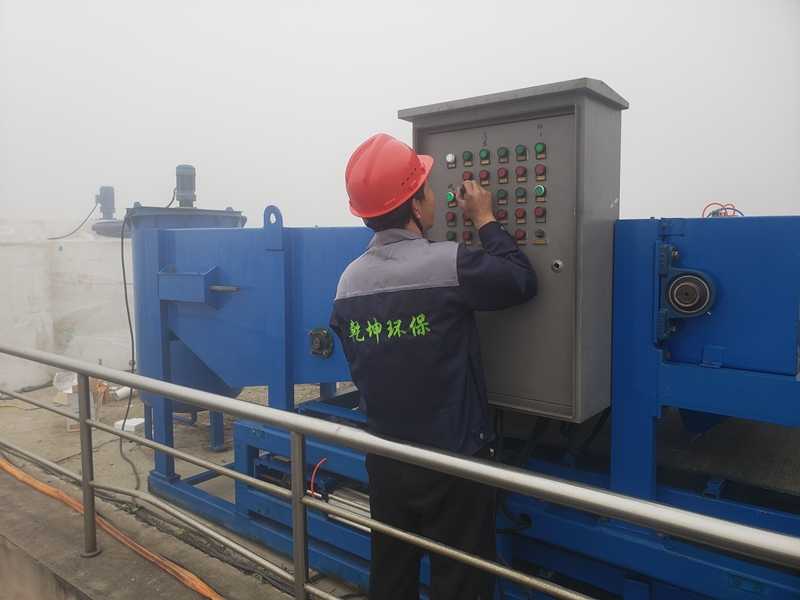 污泥首先通过的是由乾坤环保设计制造的水中造粒器,它可使污泥与药液发生无动力混合,充分发挥絮凝的作用。之后,污泥进入重力脱水区,在该区域内,含固率大于1%的污泥可以直接进行脱水,脱水后的污泥再进入压榨脱水区,通过了双重脱水的污